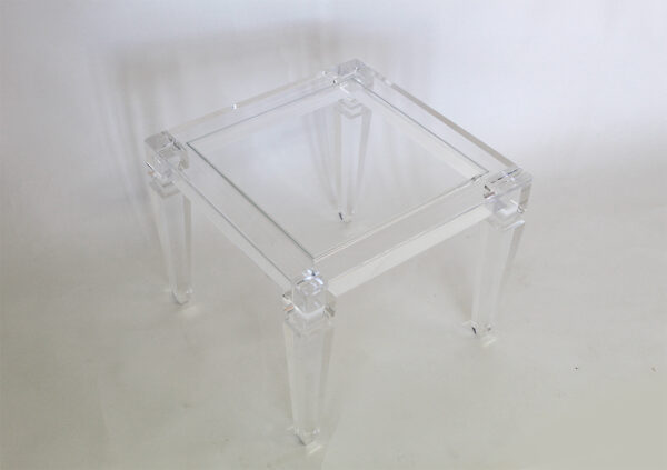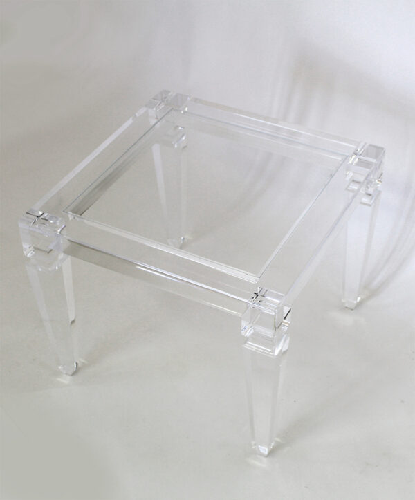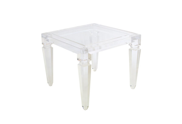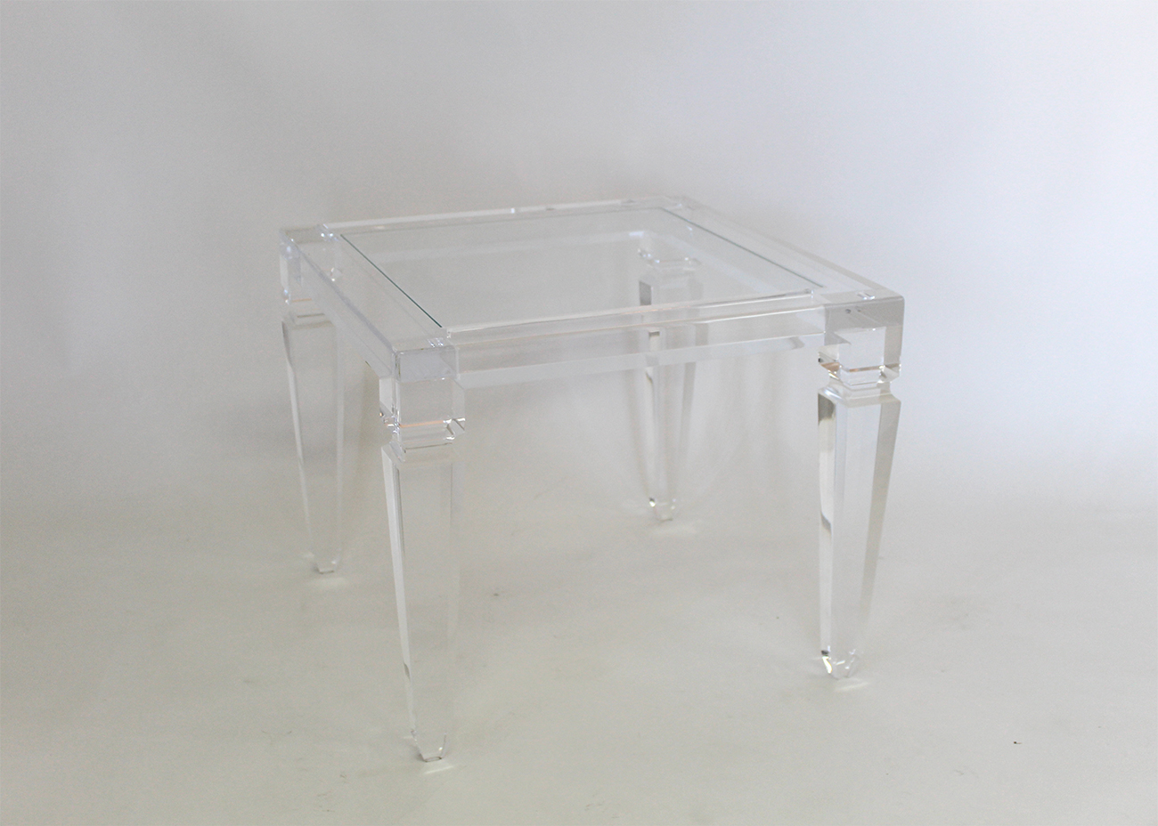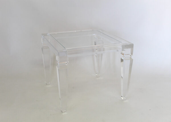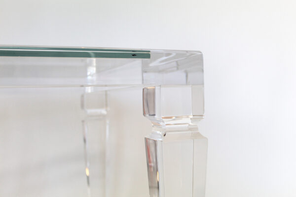 The tables of the series ‘Afrodite’ are a real classic; the best quality transparent cast acrylic, 100% MADE IN ITALY, is hand crafted: cut, milled, glued and polished to achieve this result of elegance and brightness.The top, made of extra clear glass, it is set inside the acrylic frame.The design of this table is quite common and has been made by many producers in the years, but here, what really stands out is the quality: materials, work and the invisible gluing make all the difference.The table is custumizable according to the client needs.